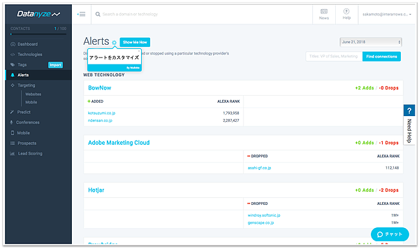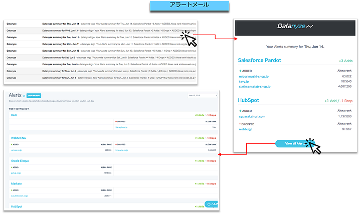 設定が終われば、翌日から登録テクノロジーの導入・解約情報をリアルタイムメールで告知してくれます。